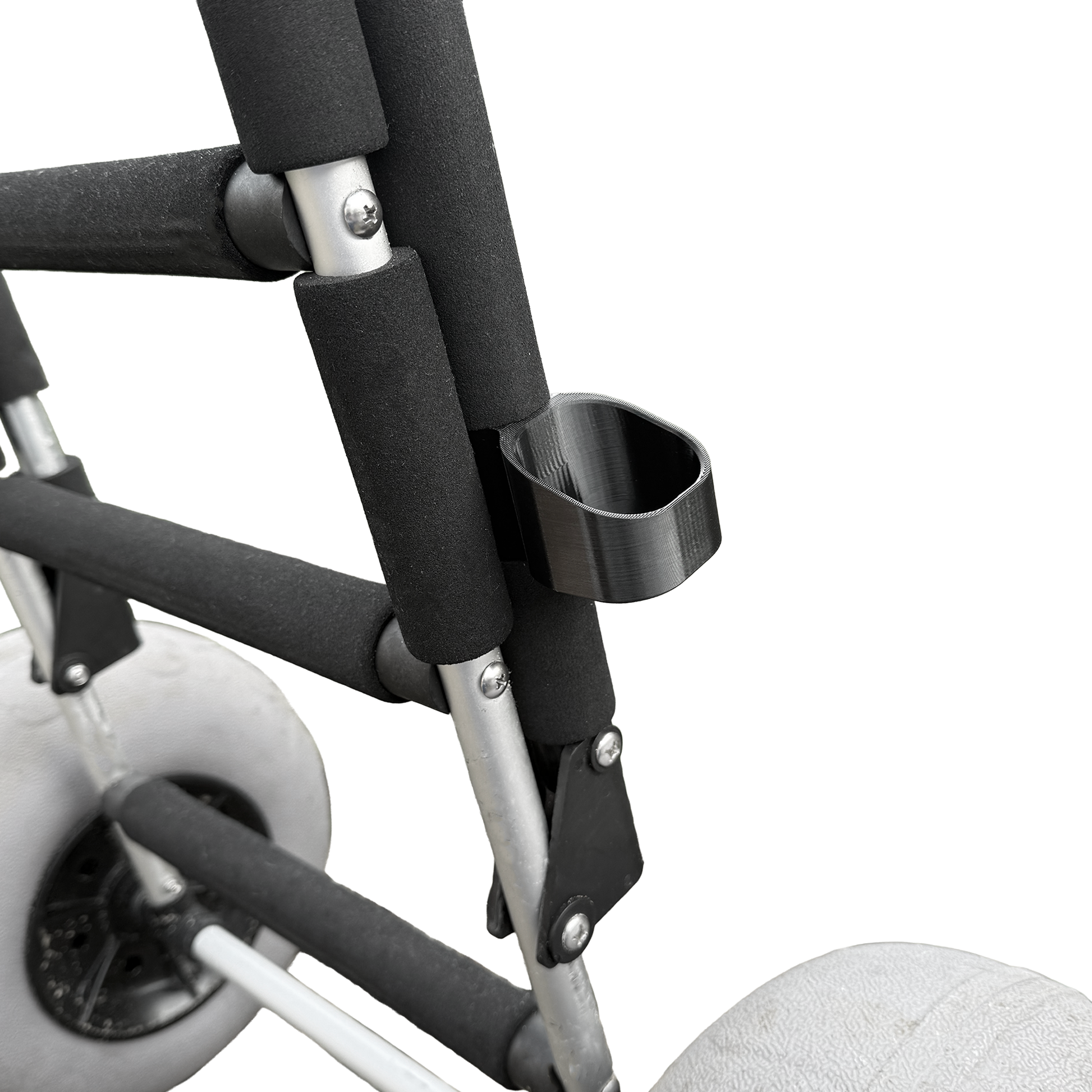 The bottom butt cup which clips neatly onto the frame of the trolley. It’s strong, compact and stays clear of the wheels and doesn’t impede the folding of the trolley.